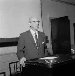 Tekst på negativkonvolutt: "amerikanske industrifolk i H. Standen. Adressa". 08.1957