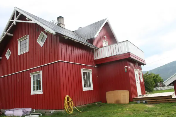 Pipe på loftet, ligger på en skråbjelke for å komme opp på takmønet, bedre trekk. Ant ei en etasjes, kanskje østerdalsstue, som utgangspunkt, med ildstedet ved veggen, så er bygningen påbygd loft.
