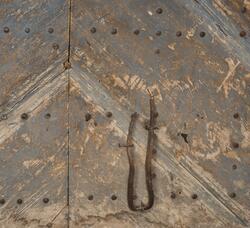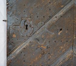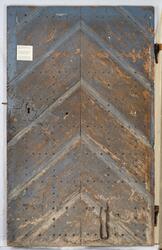 Døra var indre inngangsdør mellom våpehus og skipet i Trefoldighetskirka. Den ble sannsynligvis solgt som del av auksjonen etter kirka i 1883. Etter den tid har den vært brukt som indre lagerhusdør hos Vingelen forbruksforening. I løpet av sin levetid har den blant anna fått innskåret flere initialer, og fått spor etter barns lek med luftgevær.