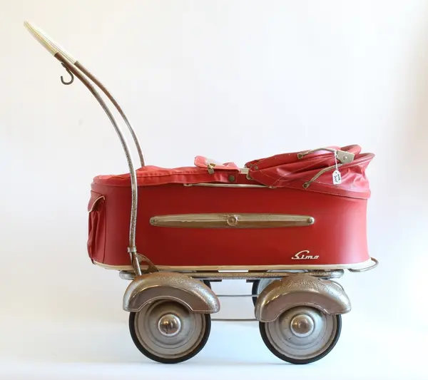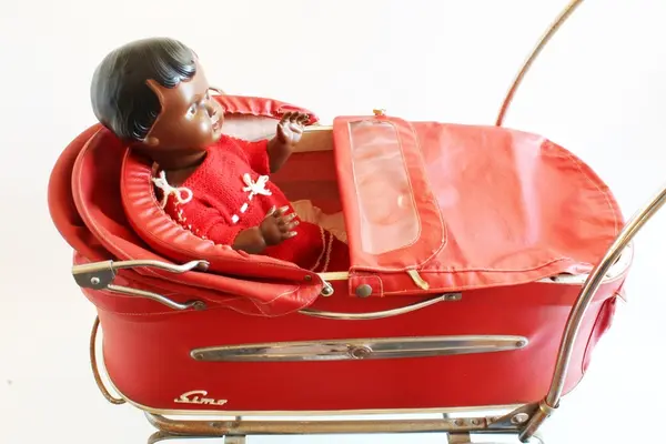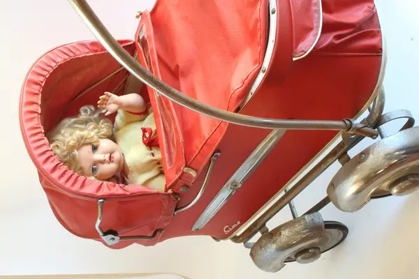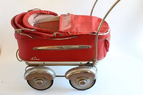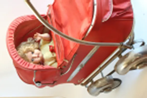 Dukkevognen fikk Gerd Berit på 5 årsdagen, i 1959. Den er kjøpt på Veitvedt. Dyne og pute er sydd av tante.