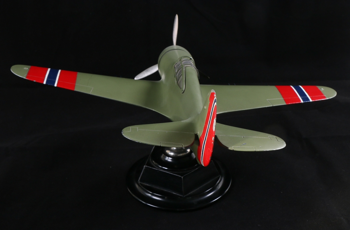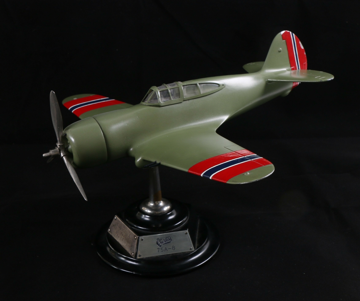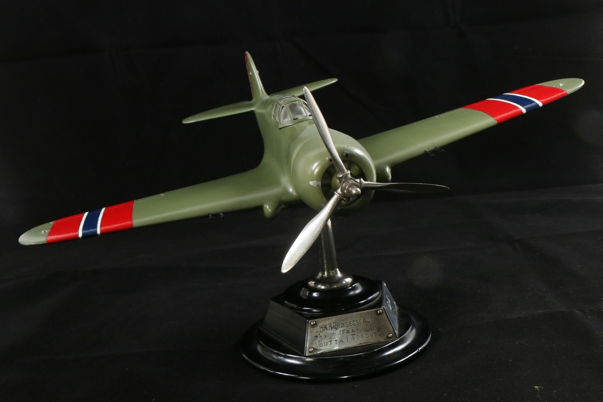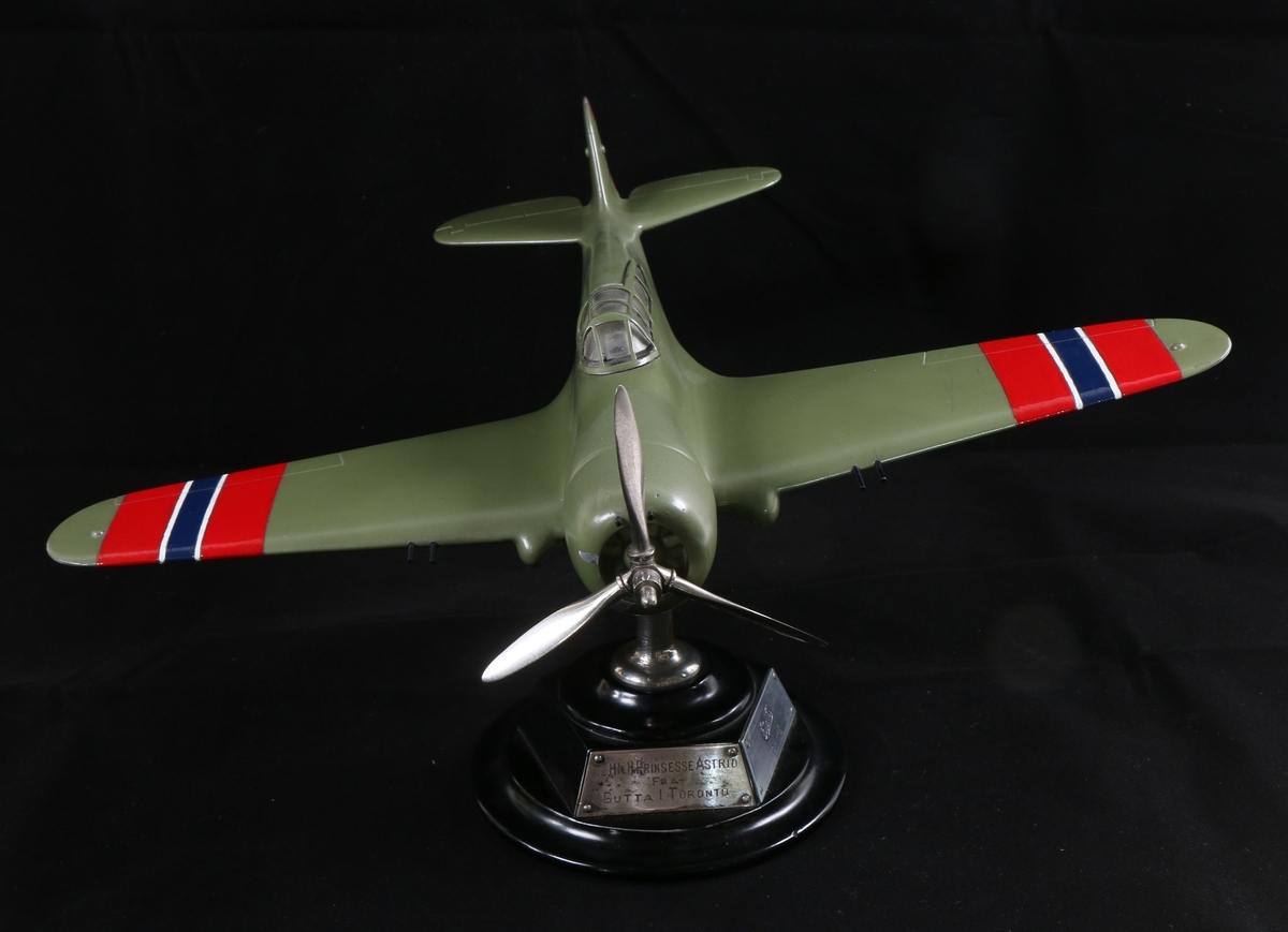 - Flymodell i metall fra Curtiss fabrikken gitt til gave til H.K.H Prinsesse Astrid fra " Gutta i Toronto " ved avdukning av et av flyene i Little Norway under andre verdenskrig. Modellen er av en av de norskbrukte Curtiss Hawk flyene i Little Norway