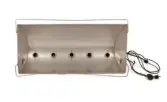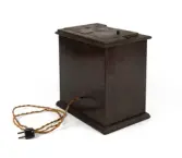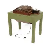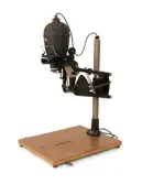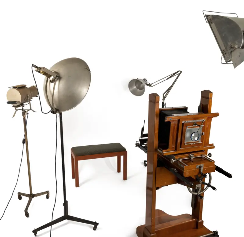Blant gjenstandane vi har fått er eit komplett sett av studiolamper som Velle brukte i sitt atelier. I tillegg ein benk han nytta til sitjande portrettfotografering.