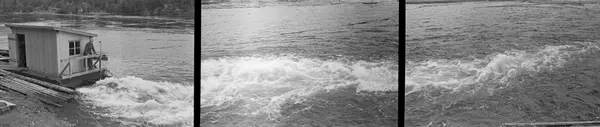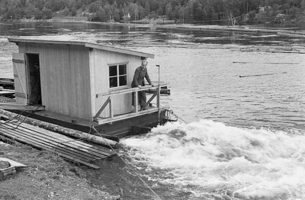 - Dette fotografiet er fra samlinga etter Glomma fellesfløtingsforening og forløperne, Christiania Tømmerdirektion (Øvre Glommens fællesfløtningsforening) og Fredrikstad Tømmerdirektion (Nedre Glommens fællesfløtningsforening). Da det ble klart at det gikk mot avvikling av fløtinga i Glommavassdraget i midten av 1980-åra initierte Norsk Skogbruksmuseum noe som ble kalt «Prosjekt Glomma». Historikeren Øivind Vestheim og fotografen OT Ljøstad fulgte fløtinga i vassdraget med kamera de siste to fløtingssesongene, mens museumsdirektør Tore Fossum samarbeidet med administrasjonen og styret i Glomma fellesfløtingsforening om best mulig ivaretakelse av levningene etter den viktige aktiviteten fløtinga hadde vært. En del installasjoner i vassdrag måtte imidlertid fjernes, slik vassdragslovgivningen forutsatte. Mange husvære ble overdratt til grunneiere for en rimelig pris, og noe ble overlatt til aktører som ville drive formidling av vassdrags- og fløtingshistorie. Arkivene etter virksomheten ble overdratt til Riksarkivet, som valgte å la det bli liggende i en av kontorbygningene ved Fetsund lenser. Ordning av dette materialet ble påbegynt under ledelse av Øivind Vestheim. Etter at det ble etablert et museum ved Fetsund lenser i 1990 har personale derfra hatt det daglige forvaltningsansvaret for arkivet etter Glomma fellesfløtingsforening. Fotomaterialet etter organisasjonen ble i forbindelse med avviklinga av fløtinga overlatt til Norsk Skogbruksmuseum. Det besto av 72 album, samt en del «løse» kopier og negativer. OT Ljøstad reprofotograferte mange av motivene ved hjelp av mellomformatkamera med negativ svart-hvitt-film. Materialet ble også enkelt registrert, i første omgang med stikkord (ofte stedsnavn og opptaksdatoer) som var skrevet inn i albumene. Skanning og fyldigere registrering tas innimellom andre oppgaver, og ettersom samlinga er stor, vil det ta lang tid før dette arbeidet er fullført.
