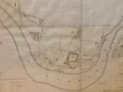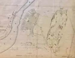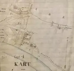 - Kartskisse over festningens territorium i Trondheim ca. 1880. Skissen viser selve Kristiansten festning, samt militære anlegg langs Nidelvens bredd og ved bymuren og skansene på vestsida av byen.