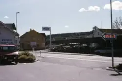 - Dette er et digitalisert lysbilde fra 1985 som dokumenterer den gamle riksvegtraseen gjennom Kongsvinger og bebyggelsen rundt. I 1984 ble dagens trasé vedtatt etter mange års debatt, og i 1991 åpnet det nye riksveganlegget med ny bru over Glomma. Kongsvinger museum har digitalisert fire lysbildeserier overtatt fra kommunen.