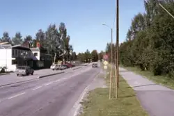 - Dette er et digitalisert lysbilde fra 1985 som dokumenterer den gamle riksvegtraseen gjennom Kongsvinger og bebyggelsen rundt. I 1984 ble dagens trasé vedtatt etter mange års debatt, og i 1991 åpnet det nye riksveganlegget med ny bru over Glomma. Kongsvinger museum har digitalisert fire lysbildeserier overtatt fra kommunen.