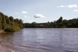 - Dette er et digitalisert lysbilde fra 1985 som dokumenterer den gamle riksvegtraseen gjennom Kongsvinger og bebyggelsen rundt. I 1984 ble dagens trasé vedtatt etter mange års debatt, og i 1991 åpnet det nye riksveganlegget med ny bru over Glomma. Kongsvinger museum har digitalisert fire lysbildeserier overtatt fra kommunen.