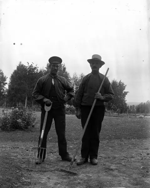 Fotografering: August 24, 1908 (www.odalenrundt.no Hans Kjølstads dagbok. Mand. 24. august 1908 Jeg var i formiddag på Østby og fotograferte. Tok et bilede av haveanlegget samt endel folk, og et billede av Gulbrand og Karl Nylænden.)