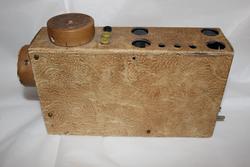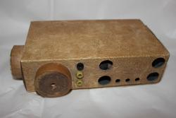 Byggmester Arne Anderssen fra Kristiansand fikk sin svoger til å lage denne radioen i lokalene til Musikk & Film i Bryggebakken. Radioen og hodetelefonene ble funnet skjult i en vegg i det samme lokalet omkring 1990.