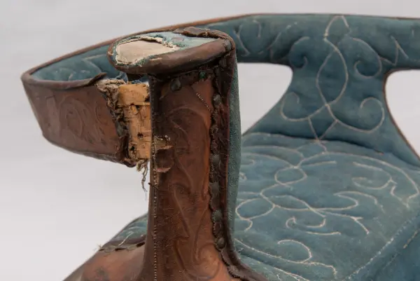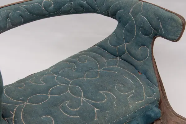 - Salen har tilhørt Alma Øiseth på Ljøner og ble gitt sammen med "1 gammel Dunk, 1 Træsil, 1 Laag, 1 Kniv". Gjenstandene ble samlet inn i forbindelse med et museumsarbeid i sørfylket startet i 1915 av fylkesgartner Oddvar Lund, festningskommandant Gottlied Erdmann og fylkesagronom Gjermund Brøten. I 1974 kom protokollen med over 150 registrerte gjenstander inn til Jostein Rabben ved Kongsvinger bibliotek. I 1985 etterlyste nyåpnede Kongsvinger museum disse gjenstandene, og major Kjell Joramo ved Kongsvinger festning tok kontakt. På festningen sto denne salen i tillegg til spisslede KMR.03162, en finneplog og en standard plog. (Kilde: Glåmdalen 23.11.1985.)