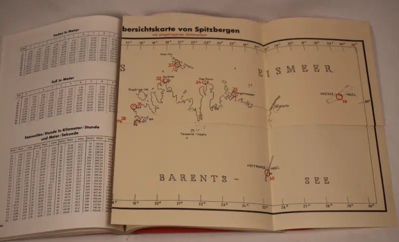 "Luftgeographisches Einzelheft Apitzbergen und Baren-Insel". Utgitt 1943. Inneholder beskrivelser, foto og flere kart. Tidligere stemplet "HEMMELIG".