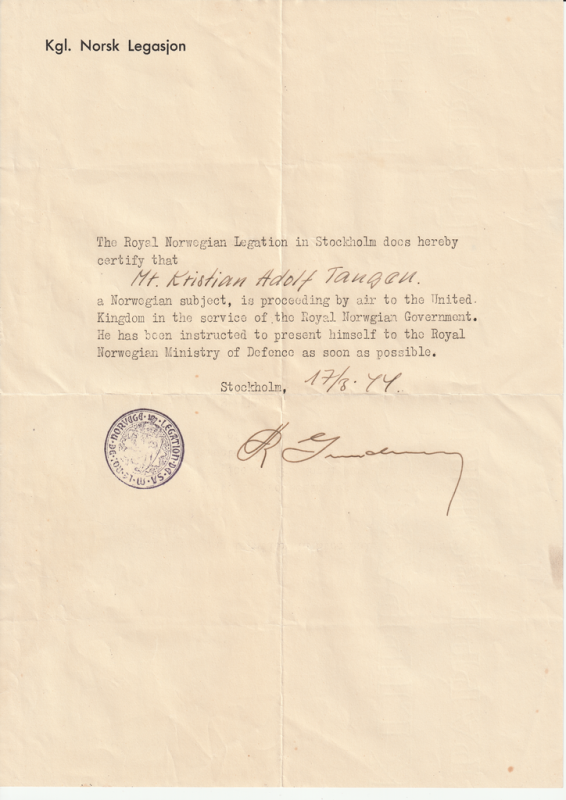 R.N.A.F . in Canada. Gitt til K A Tangen ved ankomst Toronto Canada 1944.