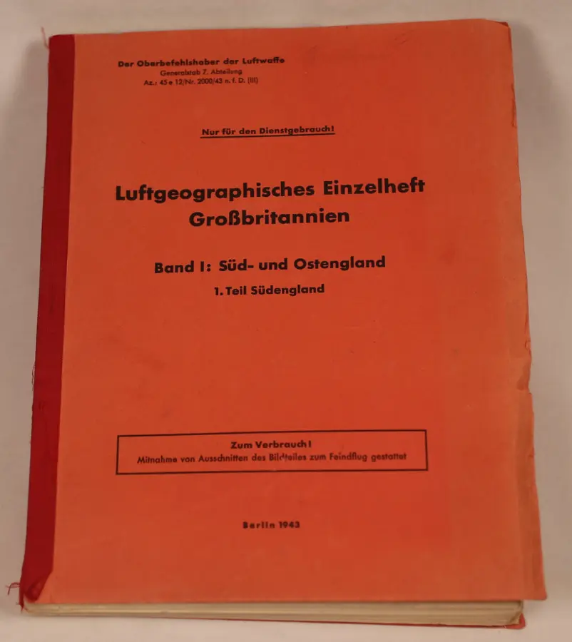"Luftgeographisches Einzelheft Grozzbritannien". Utgitt 1943. Inneholder beskrivelser, foto og flere kart.