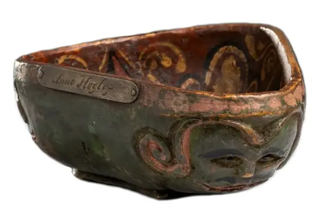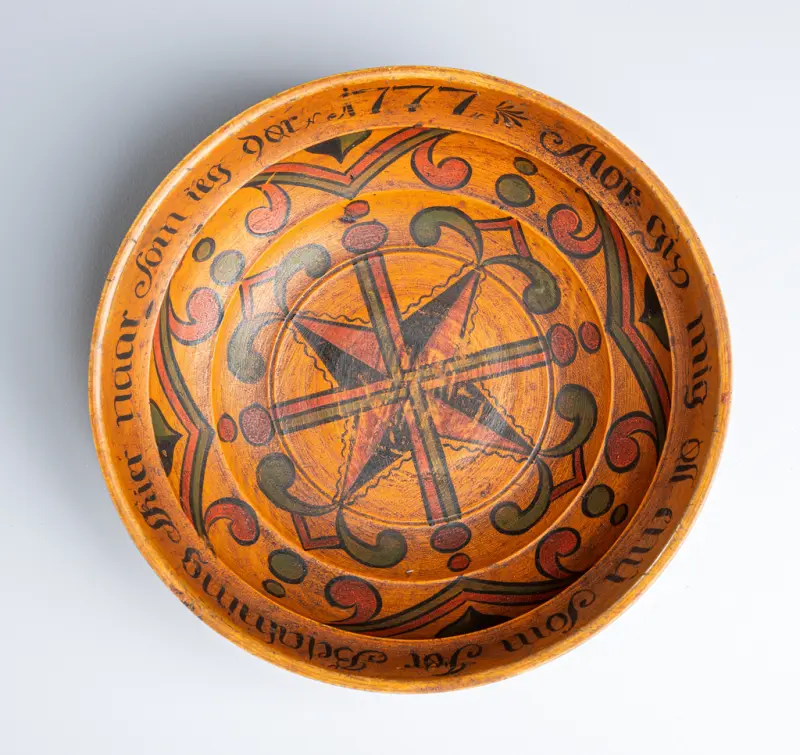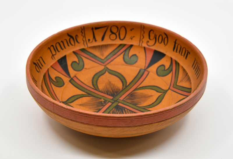 Det er fleire spennande og flotte ølbollar i Sverresborg sine samlingar. Skåla som er vedlagt nedanfor har påskrift frå 1780 og famnar både høgtid og drukkenskap: