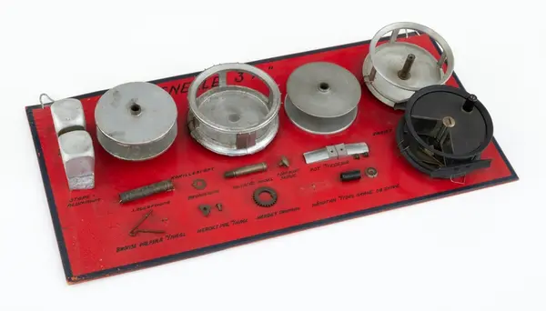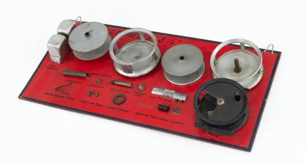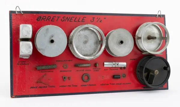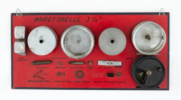 Denne fiskesnellemontasjen ble gitt som gave til Norsk Skogbruksmuseum av firmaet Asbjørn Hørgård A/S i 1986. I 1986 var museets fotograf Ole-Thorstein Ljøstad på feltarbeid ved Asbjørn Hørgårds flufiskestangfabrikk i Trondheim. Ljøstad tok filmopptak på 8 millimeter og sort-hvitt fotoopptak. Firmaet Asbjørn Hørgård A/S var i ferd med å bli nedlagt. Hørgårds spesialitet var stenger av splittede tonkinstokker (bambus), såkalt splitcane. Emnene ble importert fra Kina. Hørgård produserte den føste splitcanestanga i 1934. Hørgård konstruerte selv maskinene som ble brukt i produksjonen. Norsk Skogmuseum overtok de fleste av Hørgårds maskiner brukt i splitcaneproduksjon. Fisksnellemontasjen var en del av firmaet Hørgårds markedsføringsmateriell som fulgte med mottaket i 1986. Mesteparten av materiellet museet mottok fra Hørgård ble plassert i museets basisutstilling om ferskvannsfiske, inntil denne utstillingen ble ombygd i 2013-2014. Etter dette har fisksnellemontasjen vært oppbevart i museets magasin.