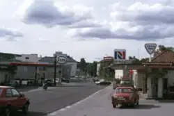 - Dette er et digitalisert lysbilde fra 1985 som dokumenterer den gamle riksvegtraseen gjennom Kongsvinger og bebyggelsen rundt. I 1984 ble dagens trasé vedtatt etter mange års debatt, og i 1991 åpnet det nye riksveganlegget med ny bru over Glomma. Kongsvinger museum har digitalisert fire lysbildeserier overtatt fra kommunen.