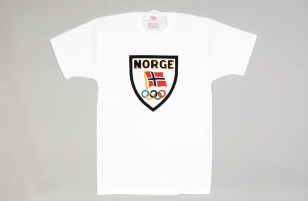 T-skjorta ble produsert av Dovre på vegne av Norges Olympiske Komité (NOK) og deres kleskomité ledet av Lise Skjåk Bræk.- ProdusentDovre fabrikker AS