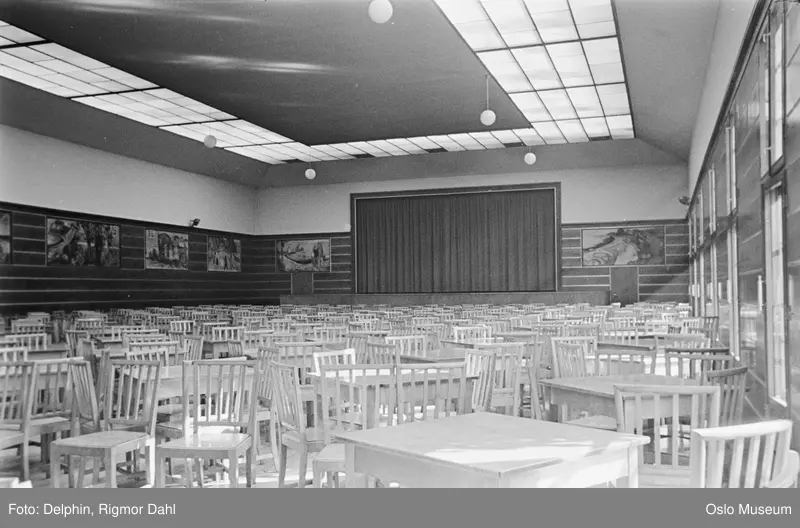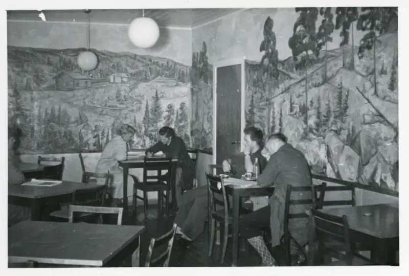 Spisesalen i fabrikklokalet er monumentalt utsmykket av Eidskog-kunstneren Arthur Eriksen (1903–1982), trolig med den Edvard Munch-dekorerte Freiasalen fra 1934 som forbilde. Eriksen ble kunstner da han mistet arbeidet i skogen i 1930-årene, og har studert i fire år ved Statens kunst- og håndverksskole. Han er inspirert av Munch og van Gogh og fyller salen med naturmotiver av "åser og fjell, setergrender og blinkende sjøer". Det er betenkelig nok ingen mennesker på bildene, kun det miljøet fabrikkarbeiderne har vendt ryggen til.