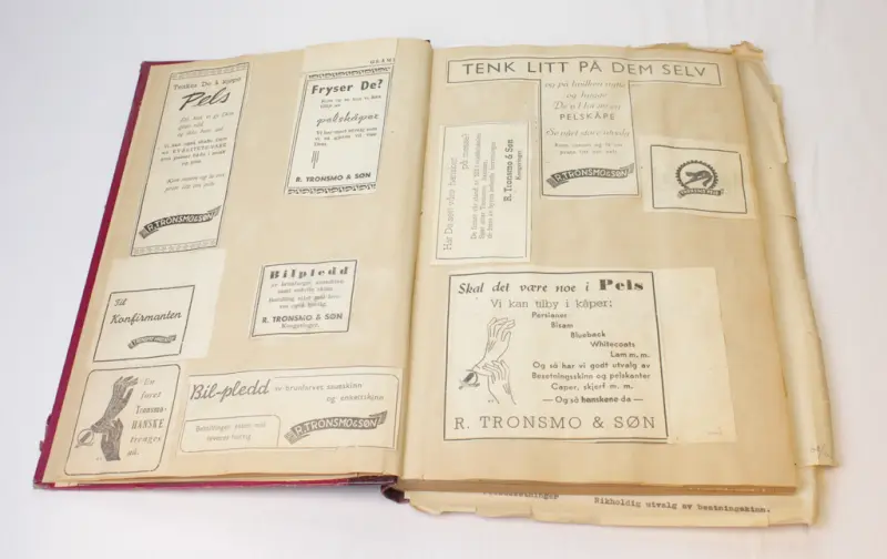 Kontrasten er stor mellom syerskene på fabrikkgulvet og den glamorøse kundegruppen som reklamen henvender seg til. En utklippsbok fra 50- og 60-tallet dokumenterer avisannonseringen og den økende materielle velstanden, forbruket og kollektive klassereisen etter annen verdenskrig. En voksende middelklasse får råd til å kjøpe statussymboler som pelskåpe – som varierer i pris fra 500 til 5000 1953-kroner. Reklametekster som «La deres kones ønskedrøm bli virkelighet til jul!» avslører tidas kjønnsroller, kjønna mote og forbruksmønster. Og oppfordringer som "TENK LITT PÅ DEM SELV" viser at sjøloppofrelsens tid er på hell.